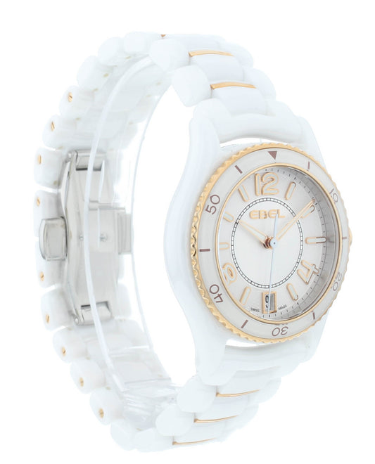 Ebel X-1 Silver Dial White Ceramic & 18k Gold 34mm Quartz Ladies Watch 1216113