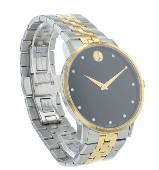 Movado Museum 40mm Two-Tone Quartz Black Diamond Dial Men's Watch 607202