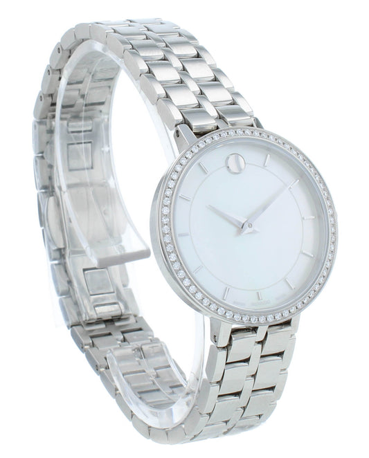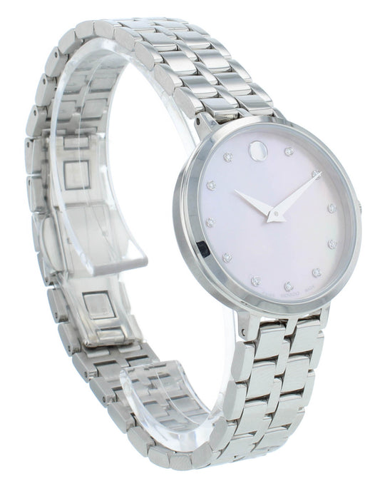 Movado Museum Classic 28.5mm Quartz White Dial Diamond Bezel Ladies Watch 607306