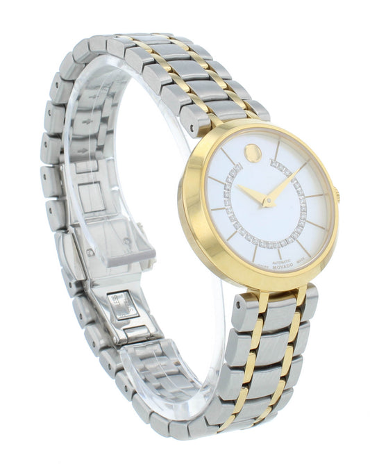 Movado 1881 Automatic 27mm Two-Tone White MOP Diamond Dial Ladies Watch 606921