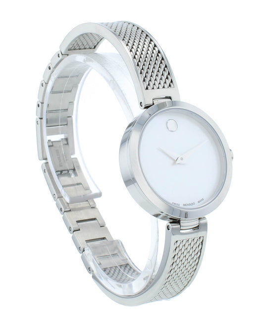 Movado Apria 30mm Quartz Silver Dial Stainless Steel Ladies Watch 607369