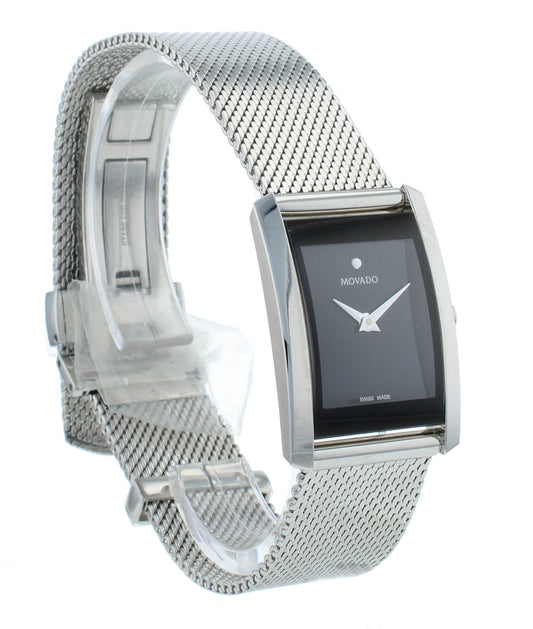 Movado La Nouvelle Quartz Black Dial 21mm Stainless Steel Ladies Watch 607188