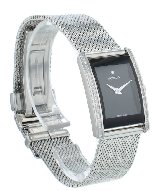 Movado La Nouvelle Quartz Black Dial 21mm Diamond Bezel Ladies Watch 607190