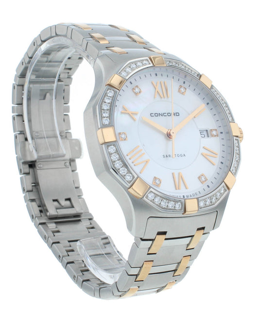Concord Saratoga 40mm Steel & 18kt Rose Gold Quartz White Dial Mens Watch 320217