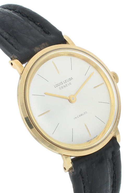 Louis Leuba Incabloc 33mm 18k Yellow Gold Silver Dial Manual Vintage Men's Watch